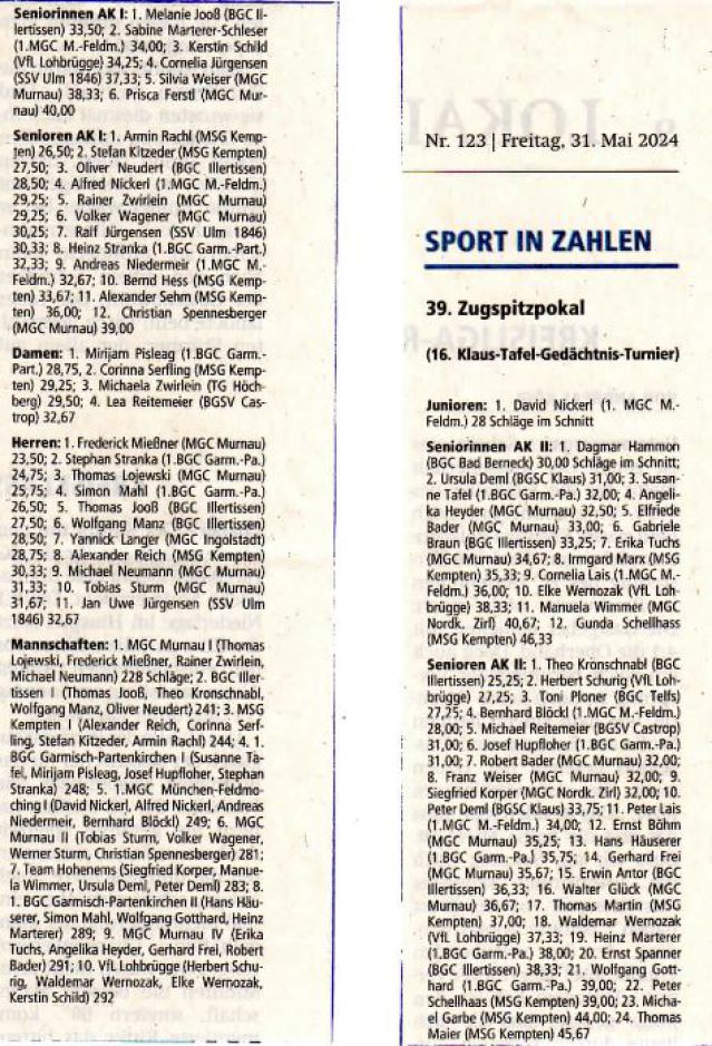 Artikel Zugspitzpokal 2022 am 20.06.2022 im Garmisch-Partenkirchner Tagblatt
